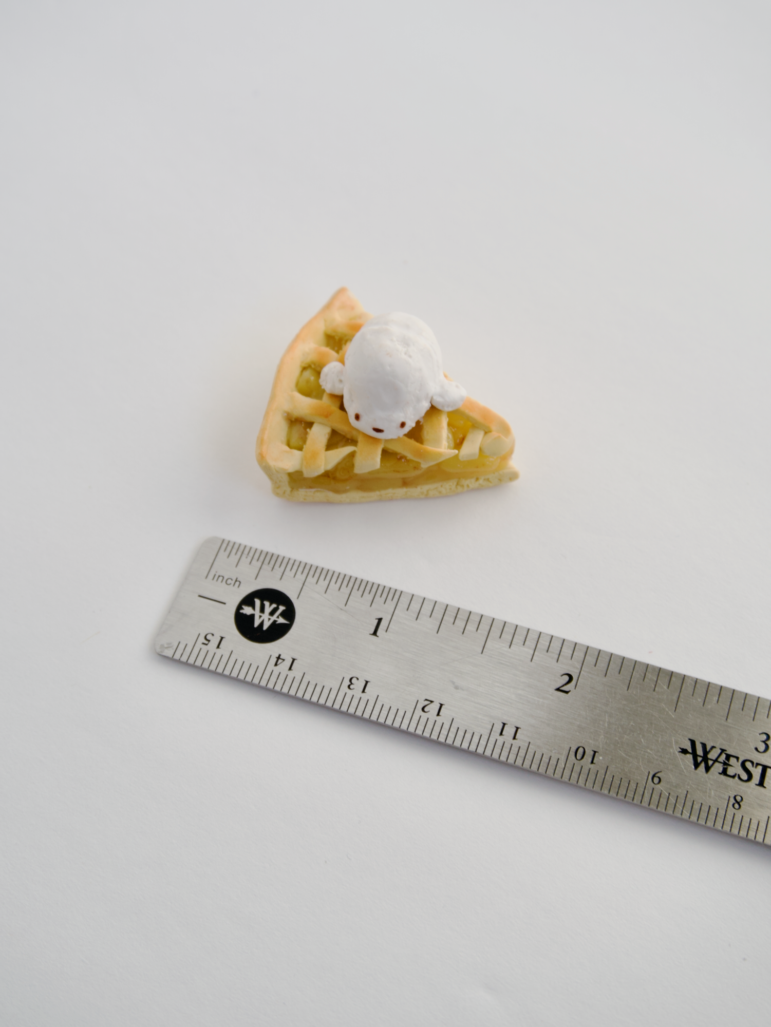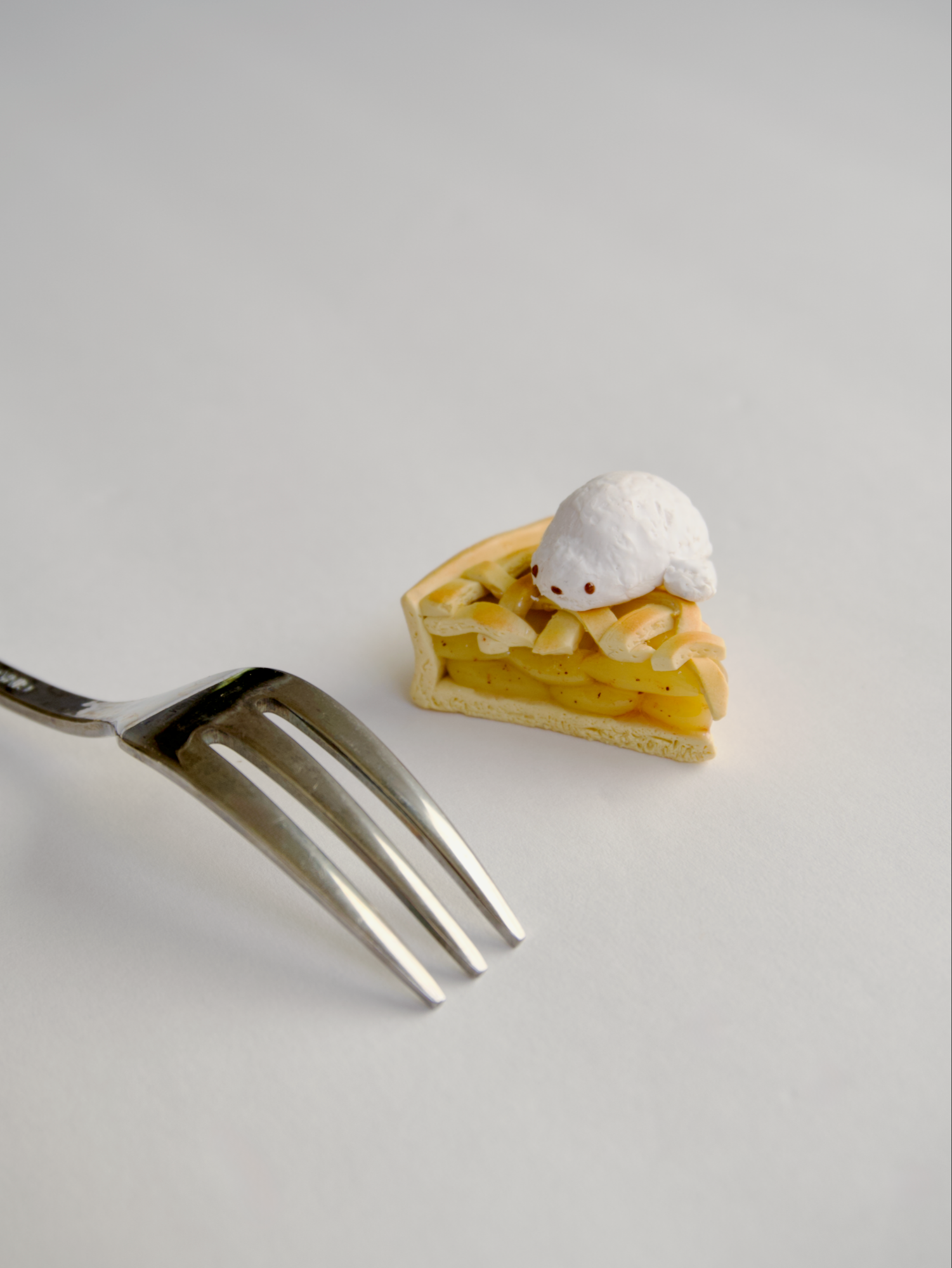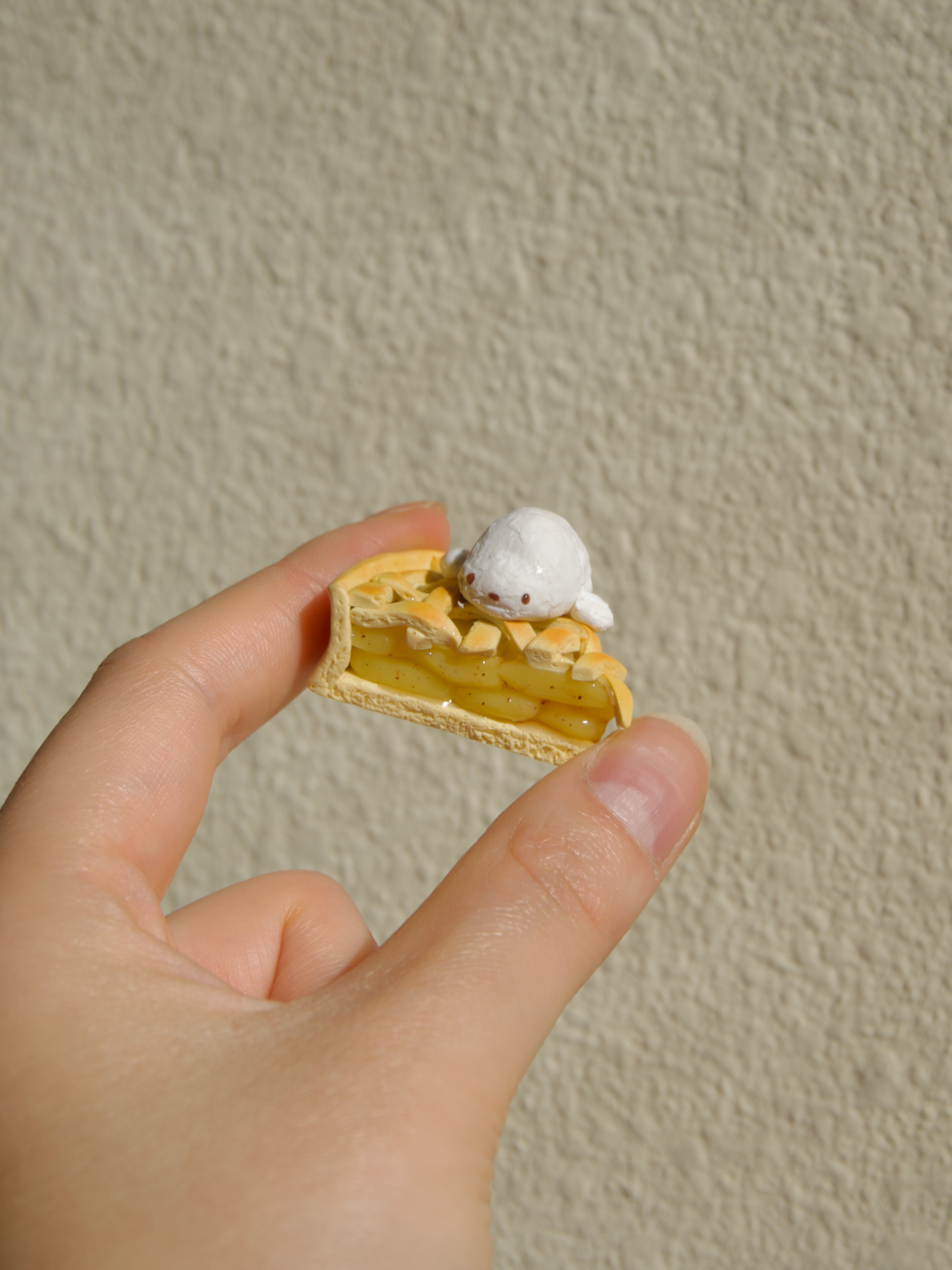 This cute little figurine can keep you company at your desk, on your nightstand, at your vanity, in your pocket, anywhere you would like a little extra sweetness. Hand sculpted with polymer clay. The finish of the figure is matte with spot gloss the filling
