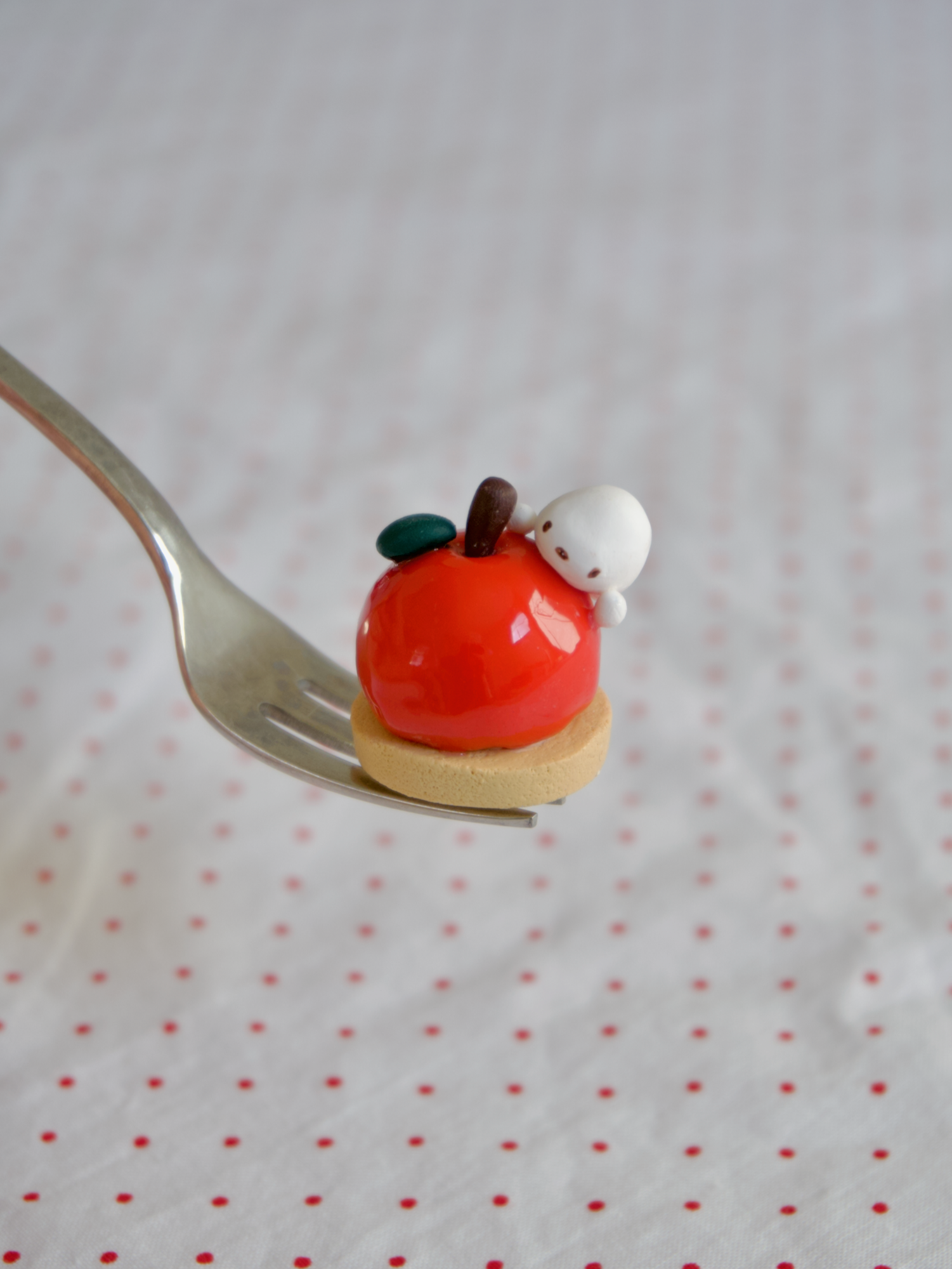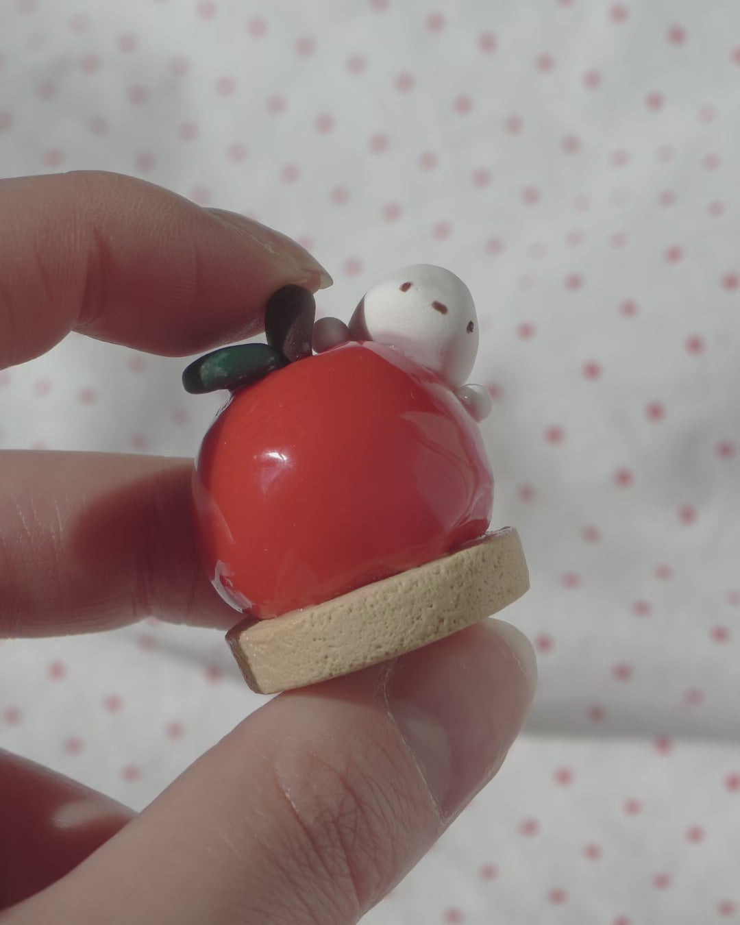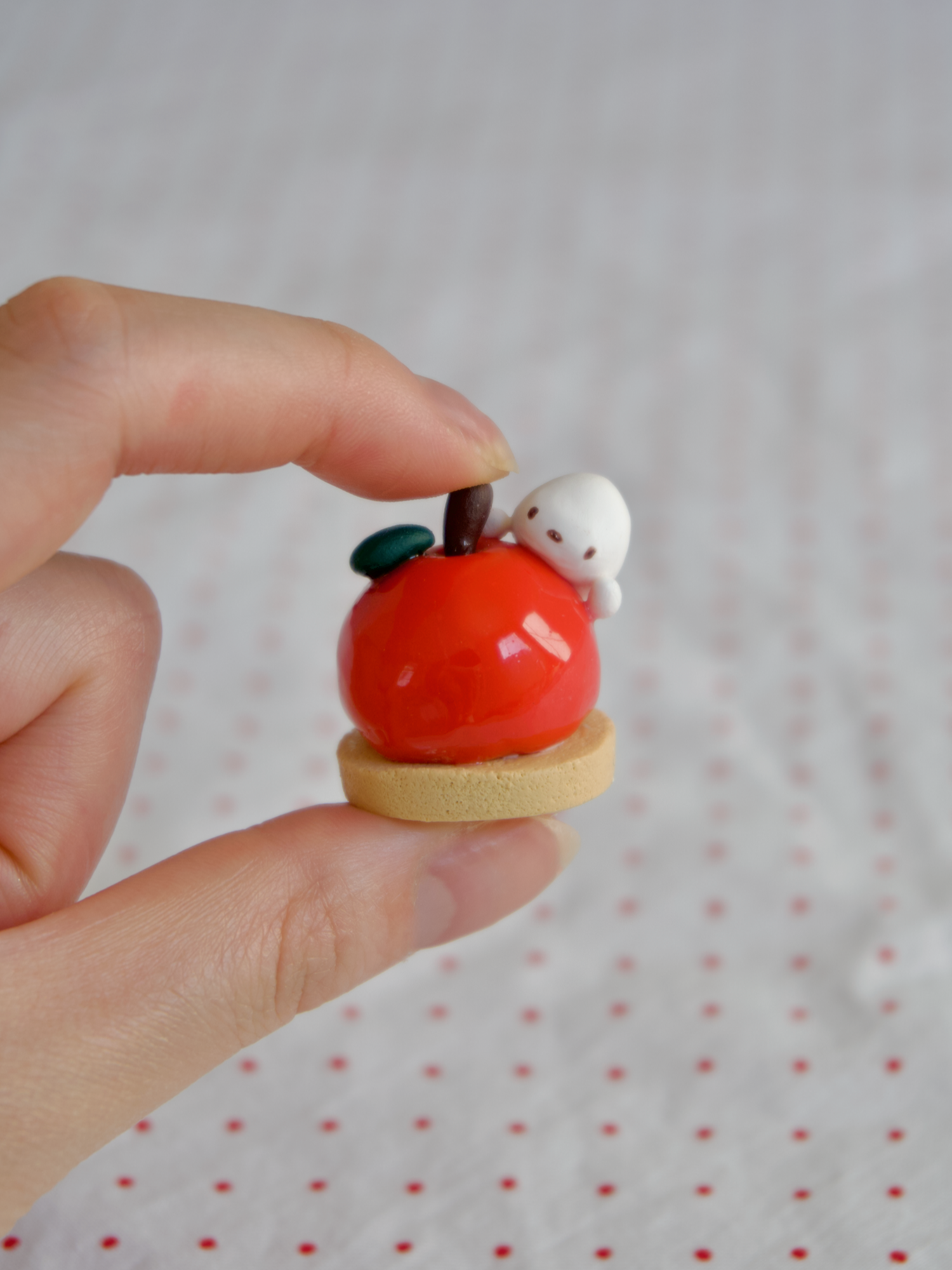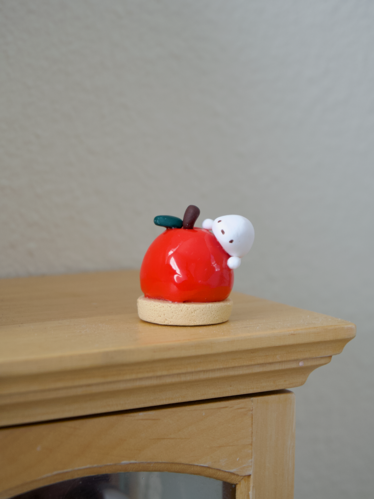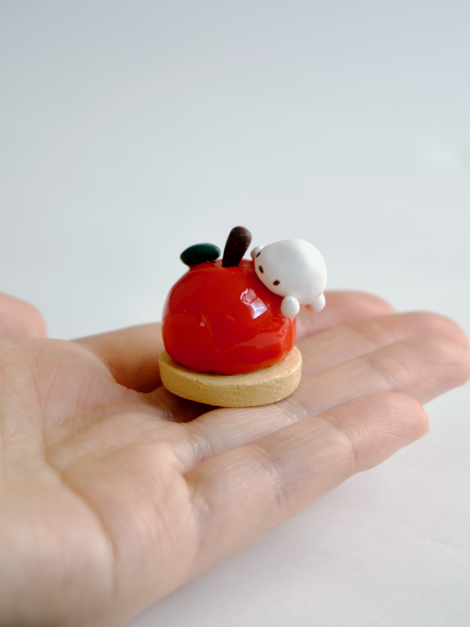 This cute little figurine can keep you company at your desk, on your nightstand, at your vanity, in your pocket, anywhere you would like a little extra sweetness. Hand sculpted with polymer clay. The finish of the figure is matte with spot gloss the filling