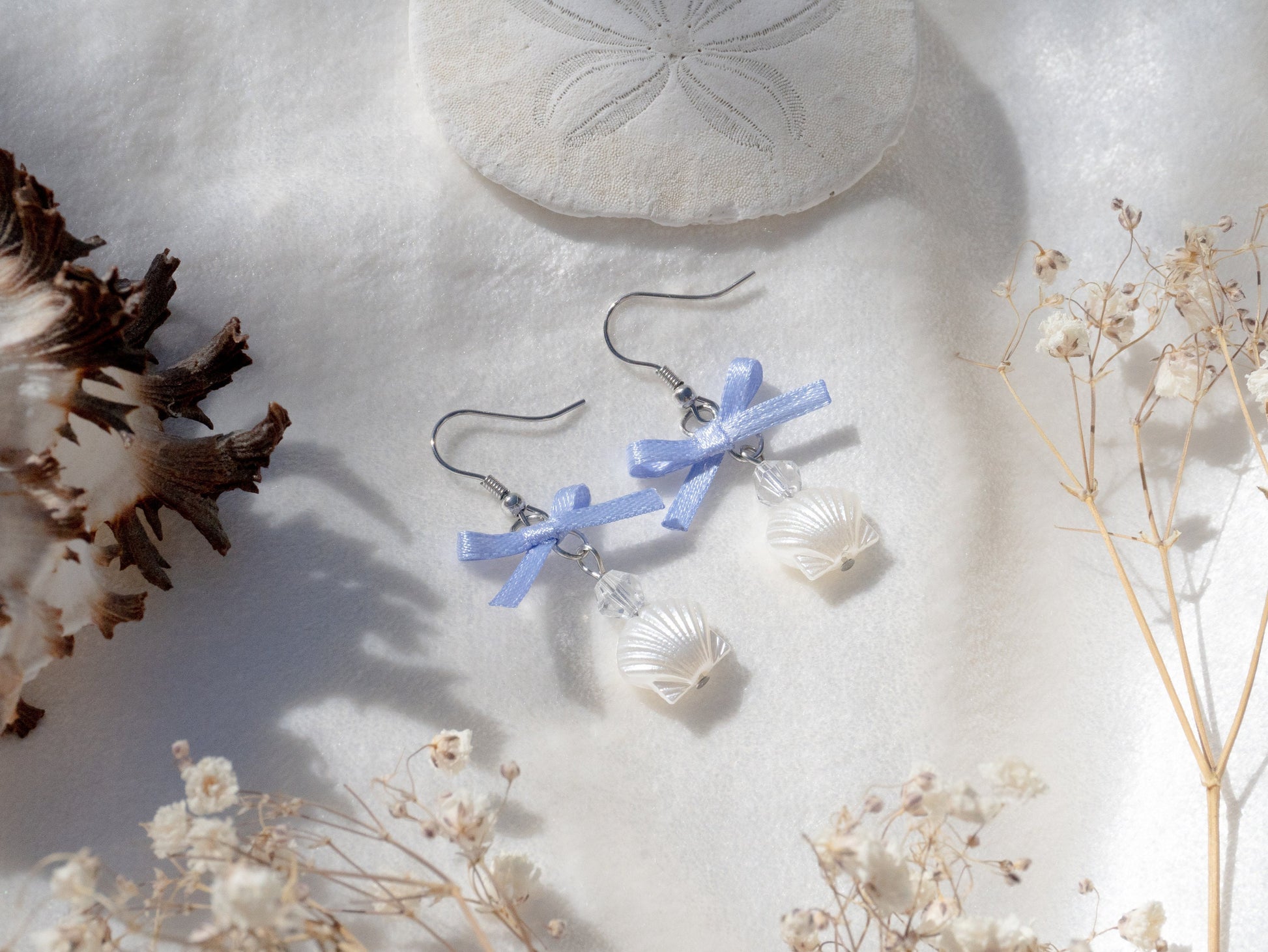 Embrace the essence of summer with these beaded earrings. These earrings combined a cute bow with a faux pearl shell, making them a perfect accessory for beach outings or adding a hint of ocean-inspired flair to any ensemble.